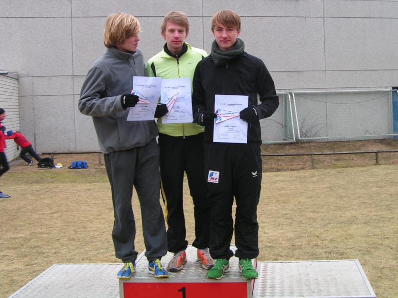 20120212 LM Cross SiegerehrungJugendB 800x600Nach ihrem Erfolg im Hauptlauf starteten die vier Haudegen  zwei Stunden später im Seniorenlauf über sechs Kilometer erneut. Graeber erwies sich hier bei den M55 auch auf der längeren Strecke als unschlagbar, Christmann folgte auf dem vierten und Vollmer auf dem siebten Platz. Bei den M50 war lediglich der mehrfach Europameister Thomas Ruminski (SVE Hiddestorf) schneller als von Gaza.  Die Mannschaftswertung ging auch in diesem Lauf klar an die LGG.