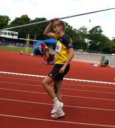 Kevin Gellert lieferte einen ebenso überzeugenden Auftritt in der U20-Konkurrenz. Er schickte seinen 800g-Speer auf 48,44m und wurde 5. Seine erst im Mai erzielte PB steigerte er erneut um 2m.