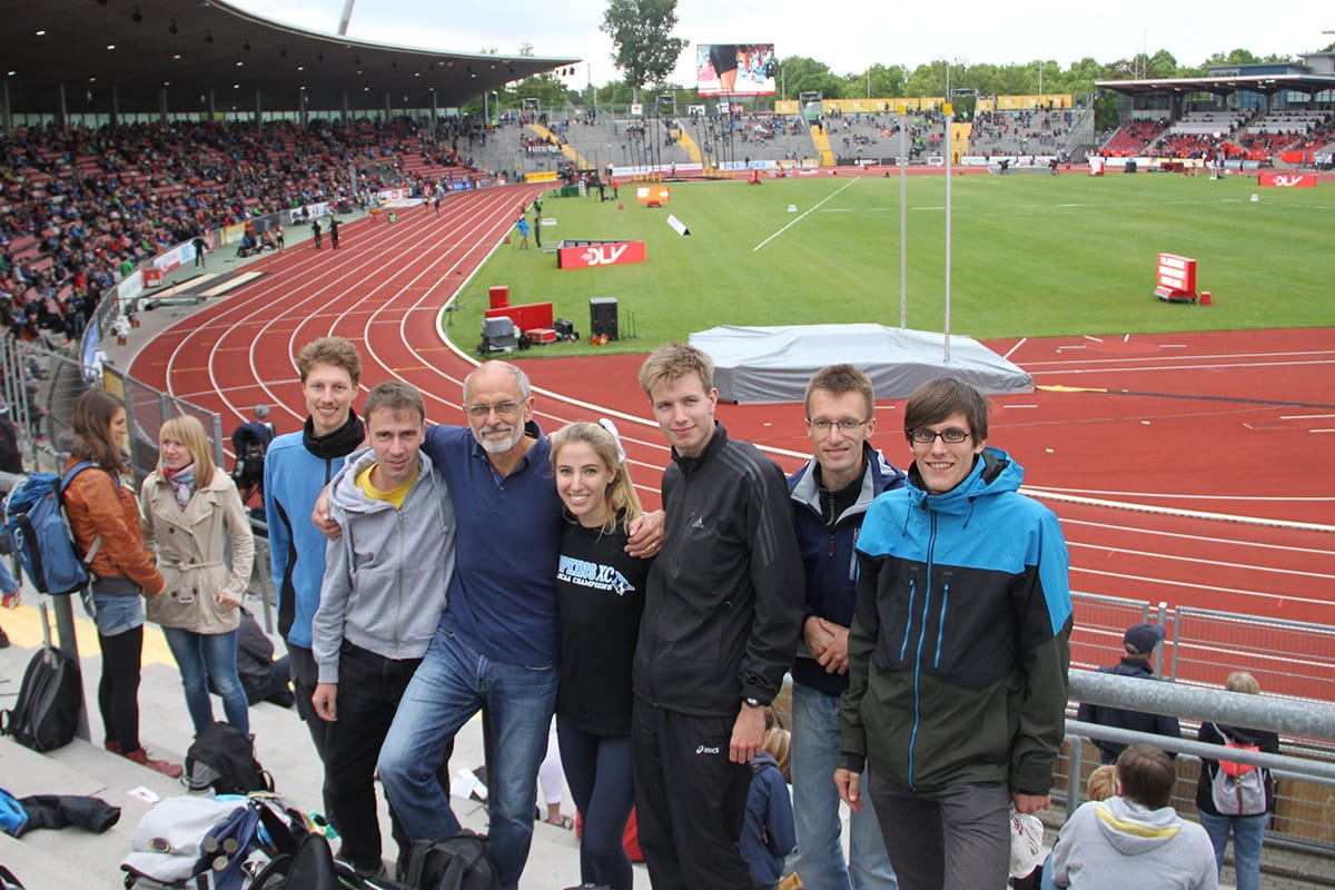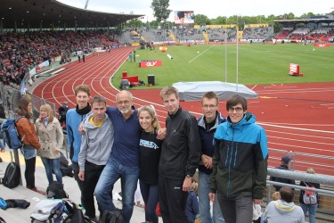 43 Aktive - insbesondere Kinder u. Jugendliche aus den Nachwuchsgruppen, einige Eltern und Übungsleiter - nahmen am Samstag, 18.6. an der Vereinsfahrt zu den Deutschen Meisterschaften nach Kassel teil. Die mit der DLV-FanCard ausgestatteten jungen Leute hatten freien Eintritt auf die Stehränge. Ab 11.00 Uhr verfolgten wir von Süd- und Nordkurve aus äußerst spannende Wettkämpfe mit teils hochkarätigen Resultaten. So durften wir z.B. Weltklasseleistungen live erleben von Betty Heidler (Hammer), Thomas Röhler (Speer), Matthias Bühler und Cindy Roleder im Hürdensprint, Gesa Krause über 3000m Hindernis, Martina Strutz (Stabhoch). Abwechslung boten zudem der freie Blick auf den Aufwärmplatz, diverse Aktionen (u.a. Autogrammzeiten mit David Storl, Christina Obergföll) auf dem Messegelände rund um's Auestadion sowie allerlei Verköstigungsstände.