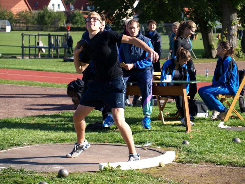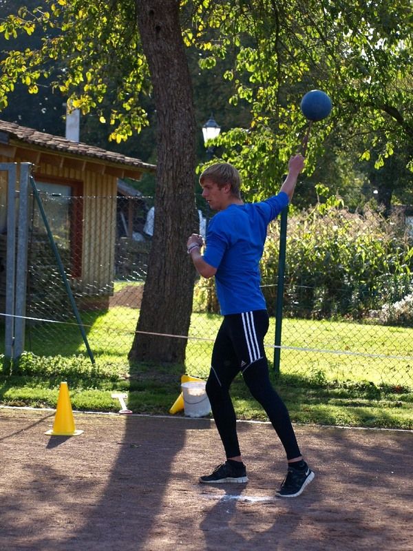 20131003 ebergoetzen martin 800x600Bei sonnig-windigem Herbstwetter schloss das LGG-Wurfteam die Freiluftsaison in Ebergötzen beim Werfertag am Feiertag zur Deutschen Einheit. Insbesondere in den Kugelstoßwettbewerben und beim Schleuderballwurf zeigten sich die jungen Leute hoch motiviert von ihrer besten Seite. Die Koch-Zwillinge (U18) stießen die 5kg-Kugel so weit wie noch nie in dieser Saison: Martin steigerte sich technisch stark verbessert auf 11,84m (2.), Julius kam auf 10,51m (3.). Von den Umstehenden beklatscht wurden Merle Henkels (U18) Kugelstöße, von denen der weiteste 12,27m (1.) maß.