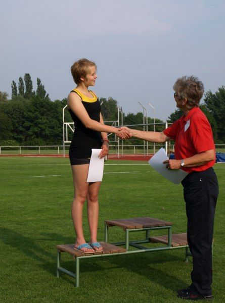 Eine solche herausragende Leistung bot  Zara Moschner bei ihrem Sieg über 100 m Hürden mit 14,64 Sekunden und der Normerfüllung für die Deutschen B-Jugendmeisterschaften. Sie wurde außerdem Zweite über 200 m (27,08 Sekunden). Überzeugend auch erneut die Vorstellung von Antonia Reinecke, die den Kugelstoß mit neuer Bestleistung von 10,69 Metern gewann und nach ihrem Hausrekord (33,48 Meter) in Greene drei Tage zuvor Zweite im Diskuswurf wurde, diesmal mit 30,93 Metern. A-Schülerin Merle Henkel schaffte als Zweite im Kugelstoß mit 9,73 Metern die B-Jugendnorm für die Landesmeisterschaften. Mit 30,78 Metern wurde sie im Diskuswurf ebenfalls Vizemeisterin. Den Titel über 1.500 m gewann Philine Fleckenstein und wurde bei ihrer Premiere über 400 m Hürden Zweite.